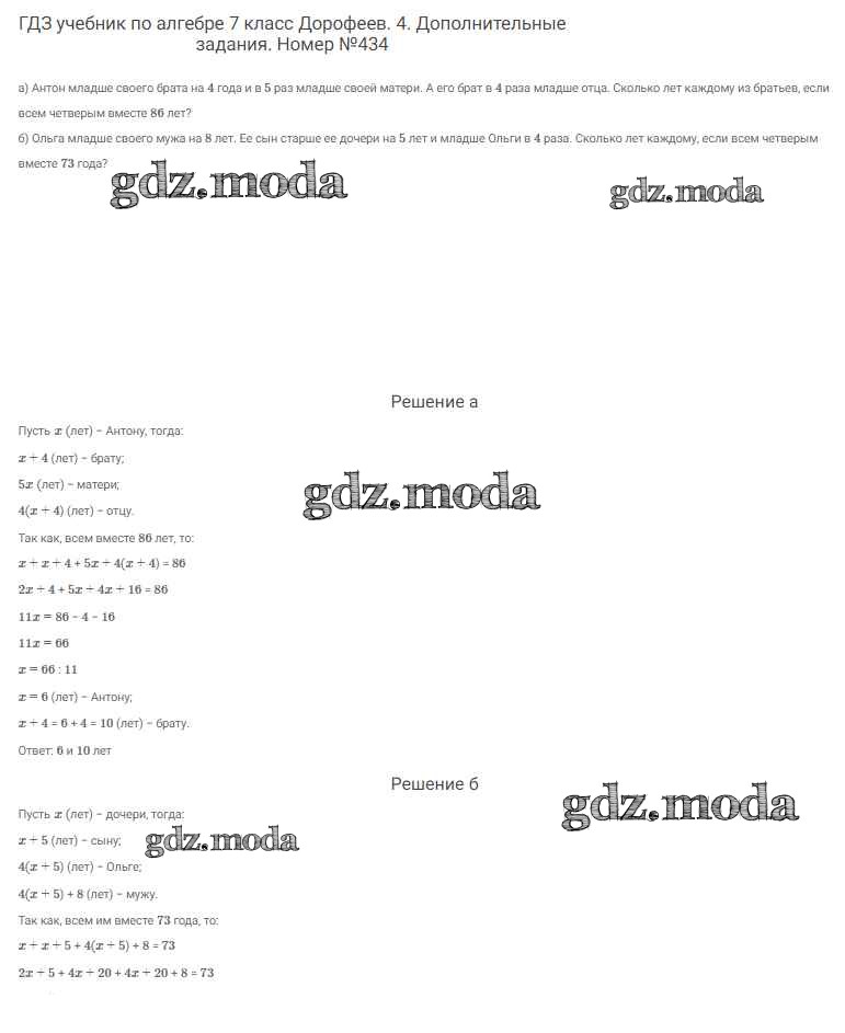 ОТВЕТ на задание № 434 Учебник по Алгебре 7 класс Дорофеев Академический школьный учебник