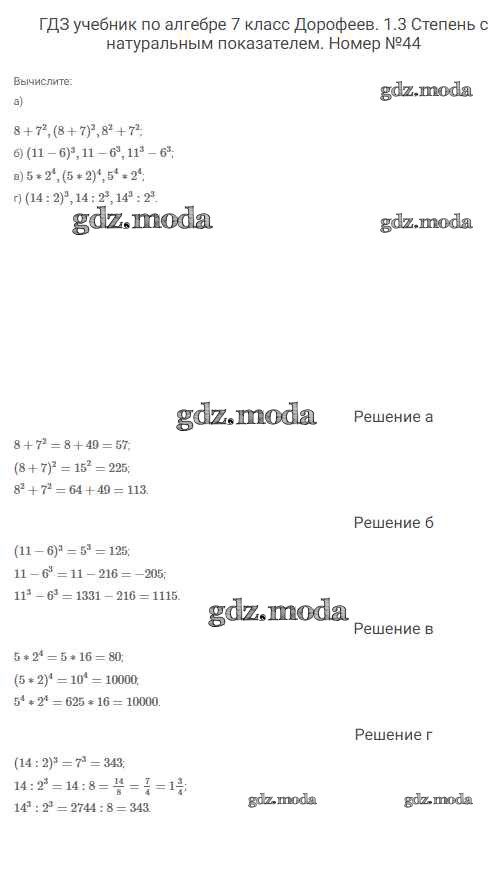 ОТВЕТ на задание № 44 Учебник по Алгебре 7 класс Дорофеев Академический школьный учебник