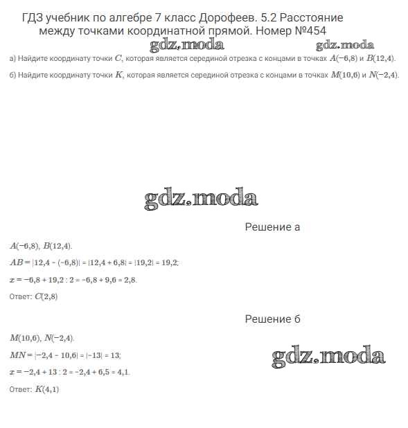 ОТВЕТ на задание № 454 Учебник по Алгебре 7 класс Дорофеев Академический школьный учебник