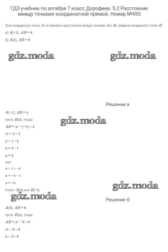ОТВЕТ на задание № 455 Учебник по Алгебре 7 класс Дорофеев Академический школьный учебник