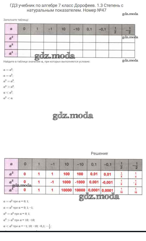 ОТВЕТ на задание № 47 Учебник по Алгебре 7 класс Дорофеев Академический школьный учебник