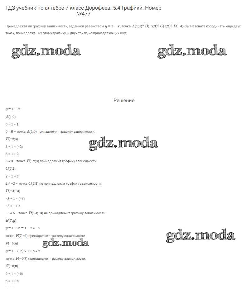 ОТВЕТ на задание № 477 Учебник по Алгебре 7 класс Дорофеев Академический школьный учебник