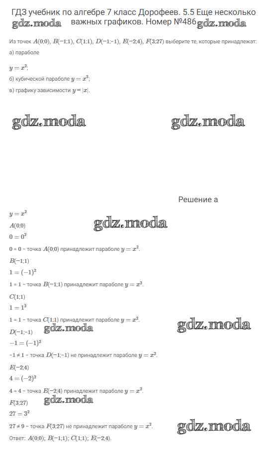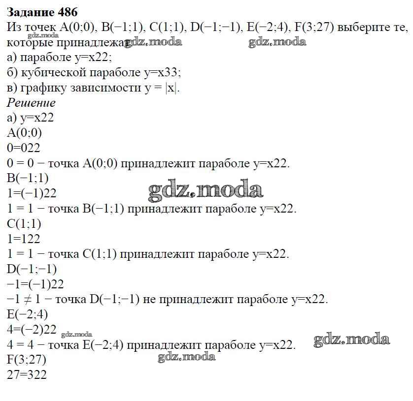 ОТВЕТ на задание № 486 Учебник по Алгебре 7 класс Дорофеев Академический школьный учебник