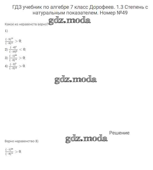 ОТВЕТ на задание № 49 Учебник по Алгебре 7 класс Дорофеев Академический школьный учебник