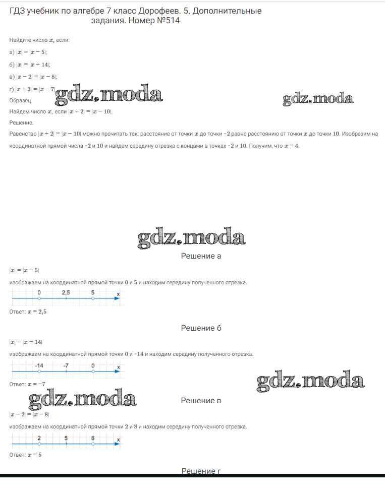 ОТВЕТ на задание № 514 Учебник по Алгебре 7 класс Дорофеев Академический школьный учебник