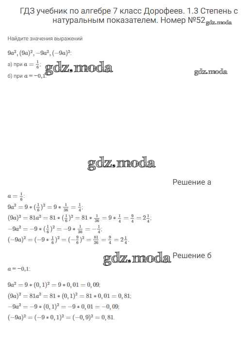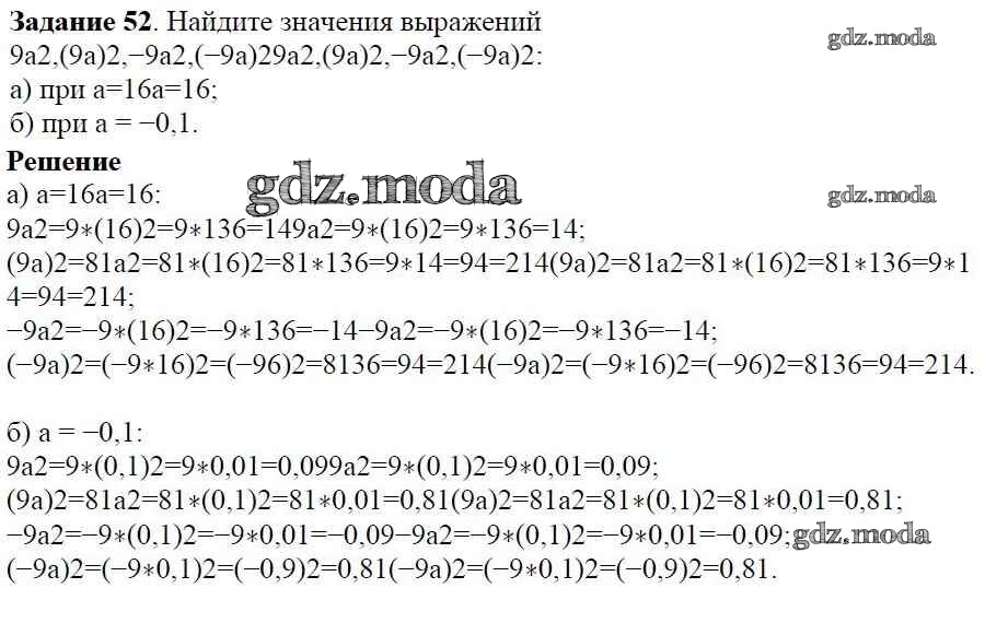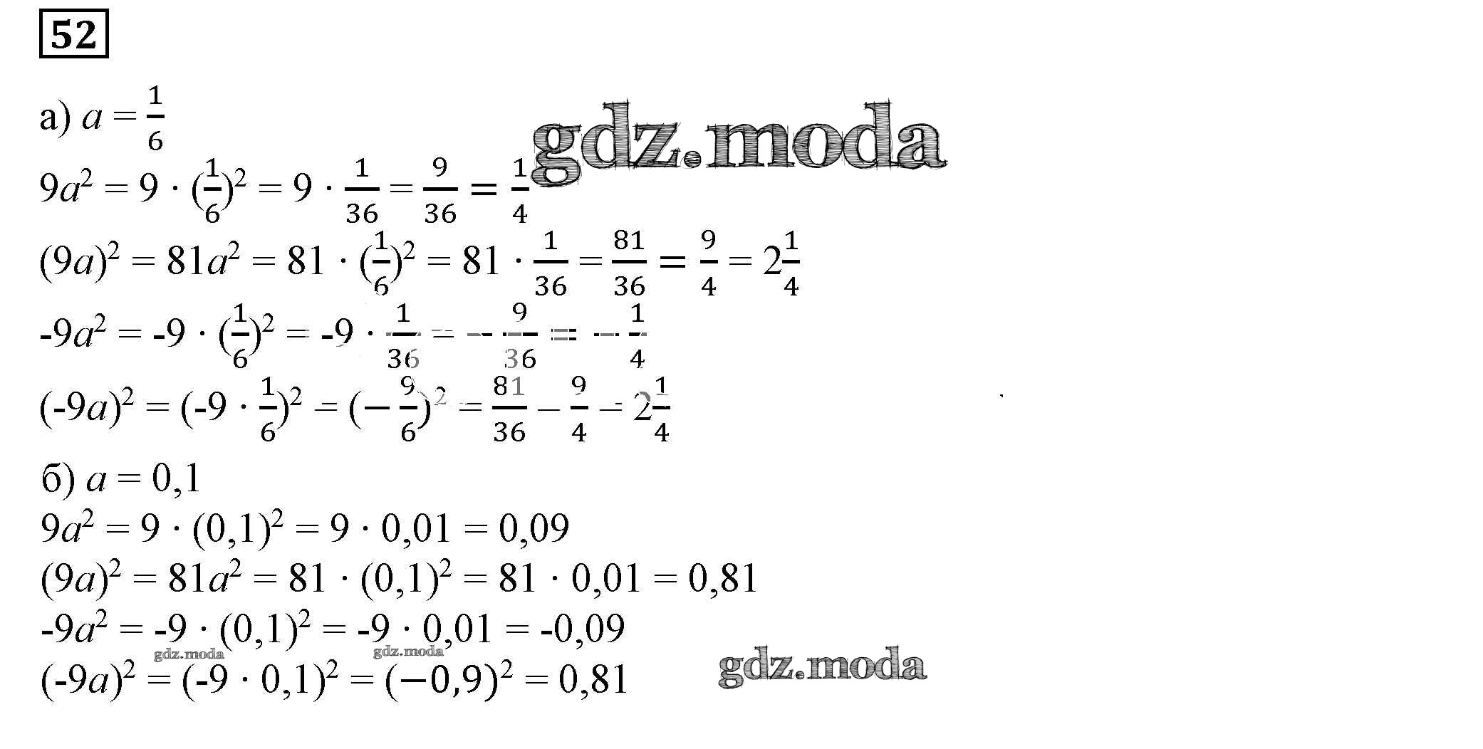 ОТВЕТ на задание № 52 Учебник по Алгебре 7 класс Дорофеев Академический школьный учебник
