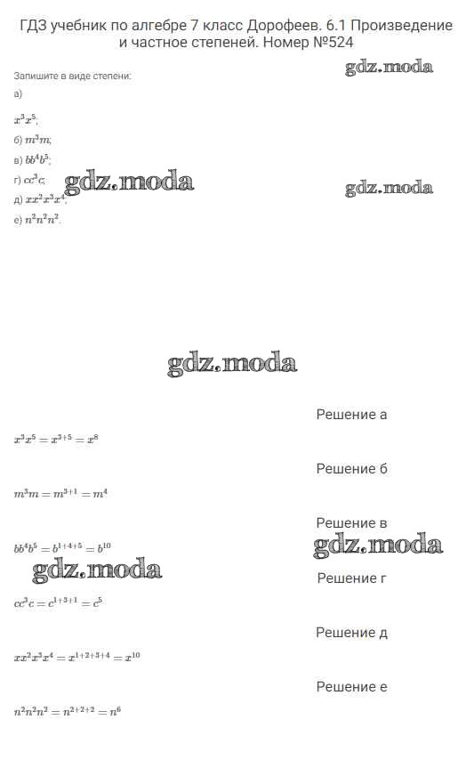 ОТВЕТ на задание № 524 Учебник по Алгебре 7 класс Дорофеев Академический школьный учебник