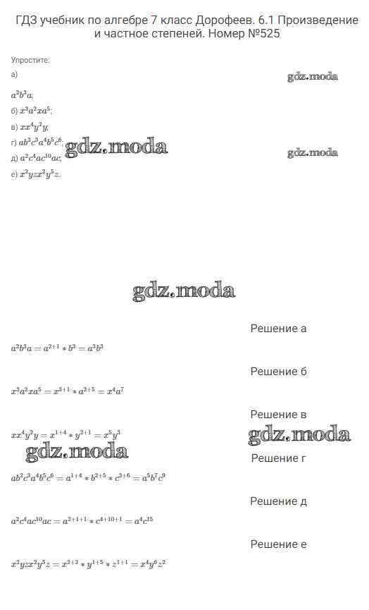 ОТВЕТ на задание № 525 Учебник по Алгебре 7 класс Дорофеев Академический школьный учебник
