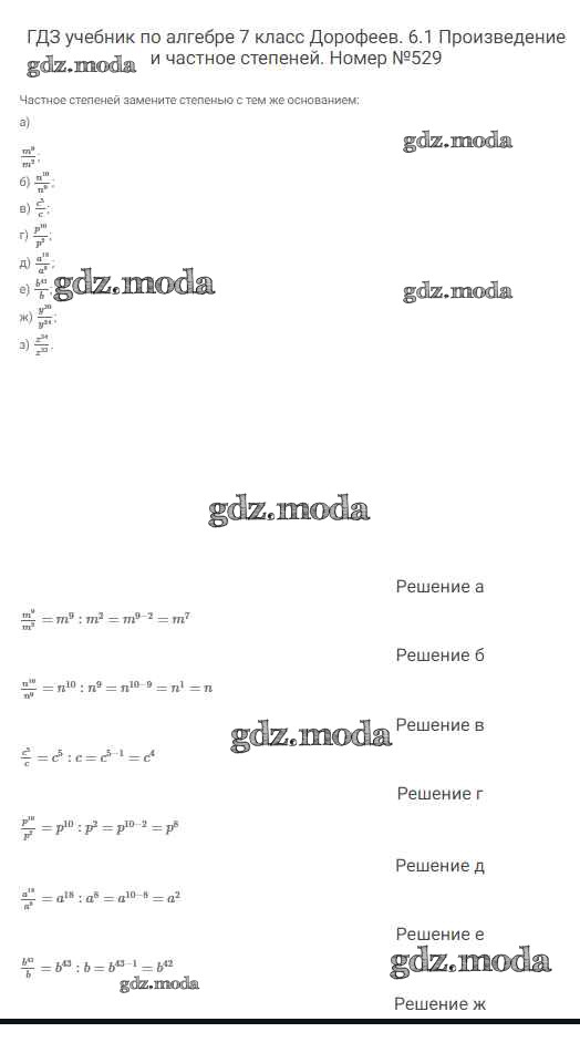 ОТВЕТ на задание № 529 Учебник по Алгебре 7 класс Дорофеев Академический школьный учебник