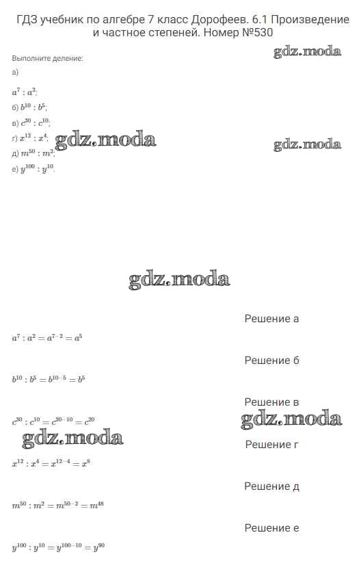 ОТВЕТ на задание № 530 Учебник по Алгебре 7 класс Дорофеев Академический школьный учебник