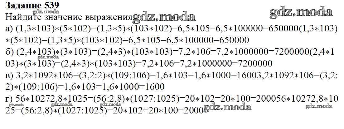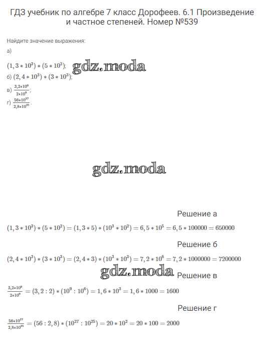 ОТВЕТ на задание № 539 Учебник по Алгебре 7 класс Дорофеев Академический школьный учебник