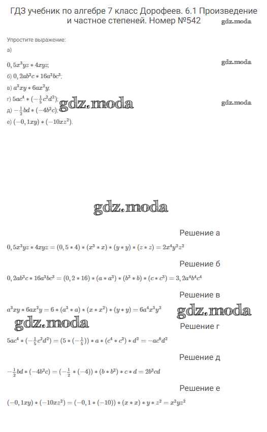 ОТВЕТ на задание № 542 Учебник по Алгебре 7 класс Дорофеев Академический школьный учебник