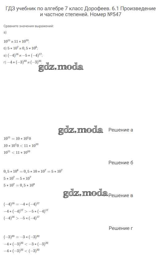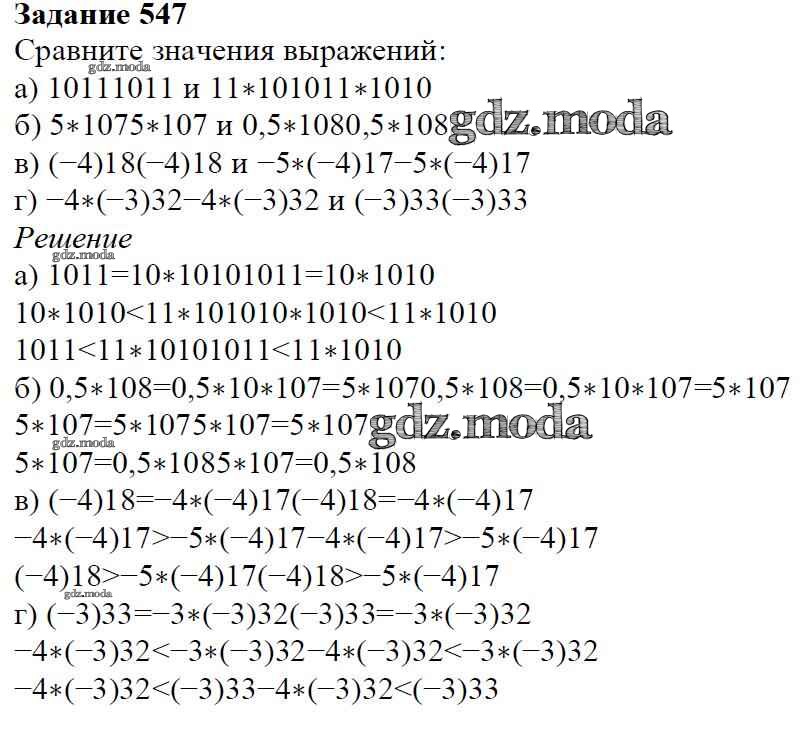ОТВЕТ на задание № 547 Учебник по Алгебре 7 класс Дорофеев Академический школьный учебник