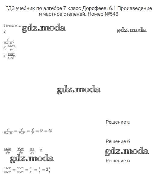 ОТВЕТ на задание № 548 Учебник по Алгебре 7 класс Дорофеев Академический школьный учебник