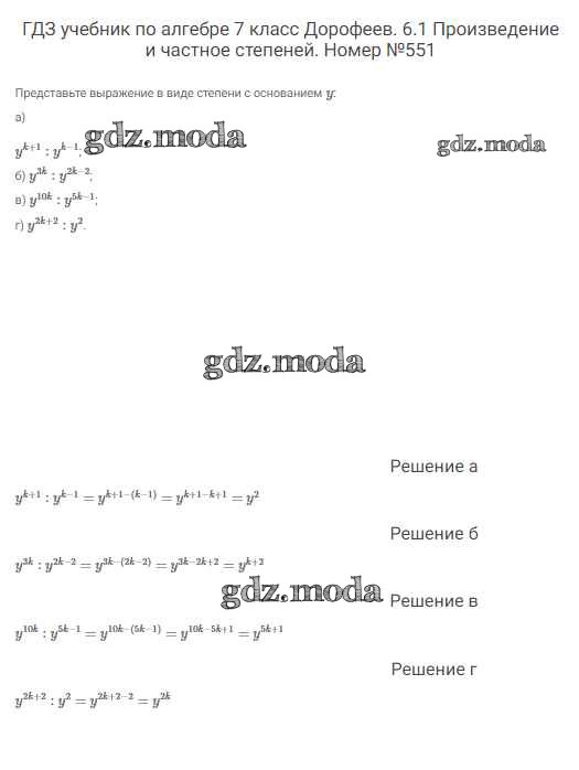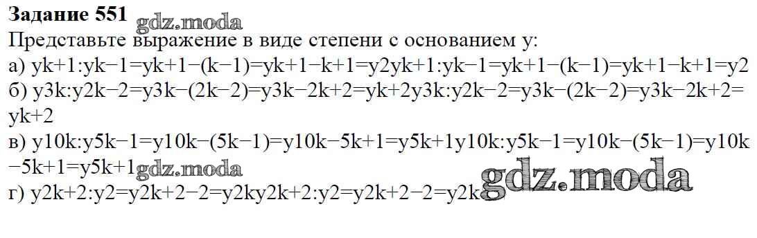 ОТВЕТ на задание № 551 Учебник по Алгебре 7 класс Дорофеев Академический школьный учебник