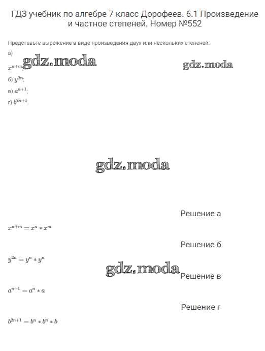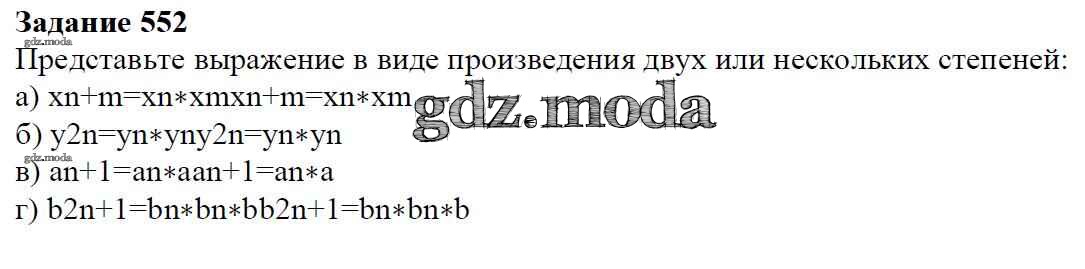 ОТВЕТ на задание № 552 Учебник по Алгебре 7 класс Дорофеев Академический школьный учебник