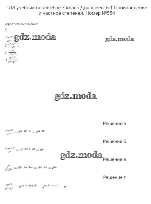 ОТВЕТ на задание № 554 Учебник по Алгебре 7 класс Дорофеев Академический школьный учебник