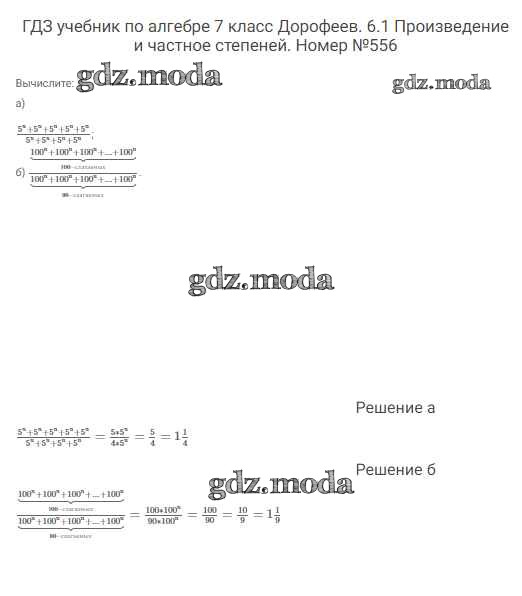 ОТВЕТ на задание № 556 Учебник по Алгебре 7 класс Дорофеев Академический школьный учебник