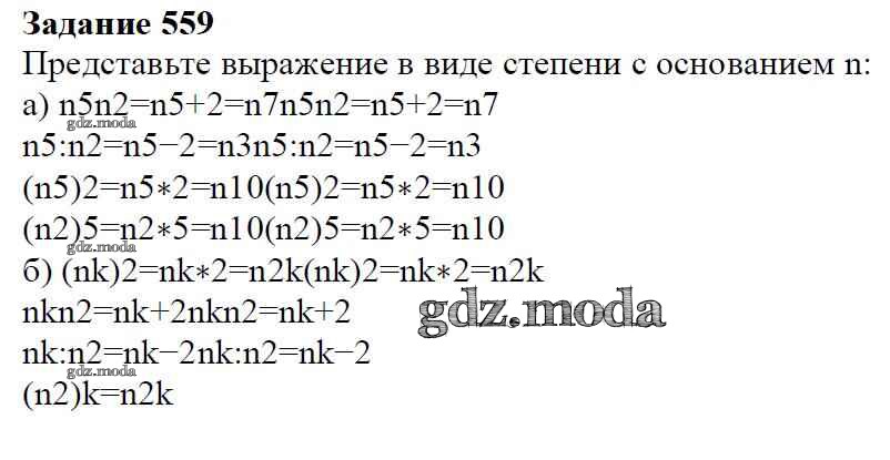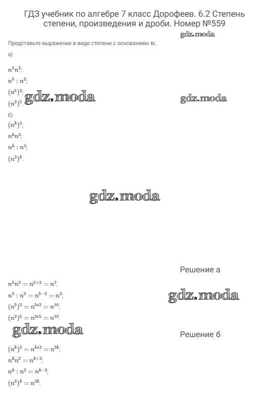 ОТВЕТ на задание № 559 Учебник по Алгебре 7 класс Дорофеев Академический школьный учебник