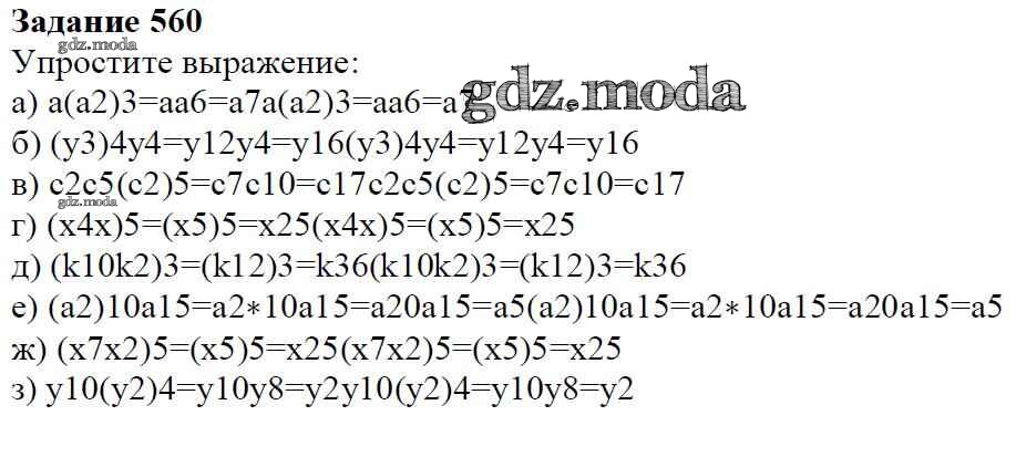 ОТВЕТ на задание № 560 Учебник по Алгебре 7 класс Дорофеев Академический школьный учебник