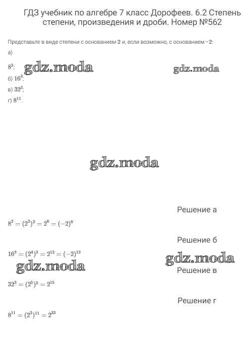 ОТВЕТ на задание № 562 Учебник по Алгебре 7 класс Дорофеев Академический школьный учебник