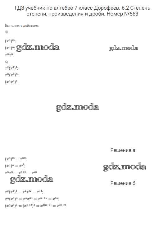 ОТВЕТ на задание № 563 Учебник по Алгебре 7 класс Дорофеев Академический школьный учебник