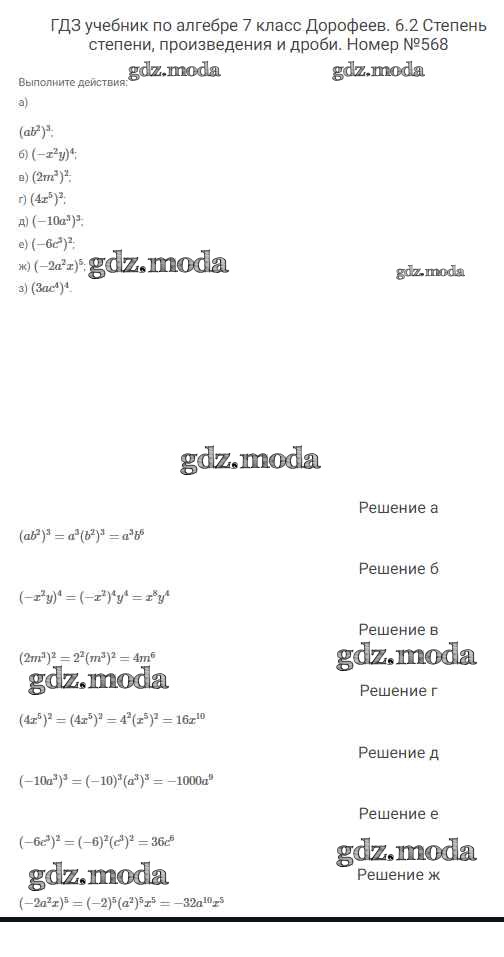 ОТВЕТ на задание № 568 Учебник по Алгебре 7 класс Дорофеев Академический школьный учебник