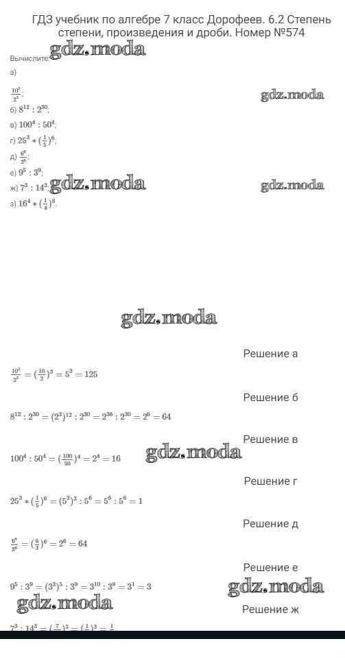 ОТВЕТ на задание № 574 Учебник по Алгебре 7 класс Дорофеев Академический школьный учебник