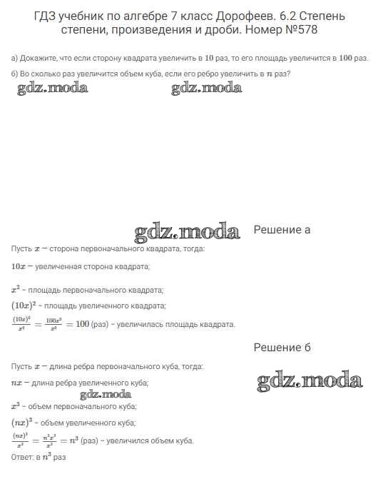ОТВЕТ на задание № 578 Учебник по Алгебре 7 класс Дорофеев Академический школьный учебник
