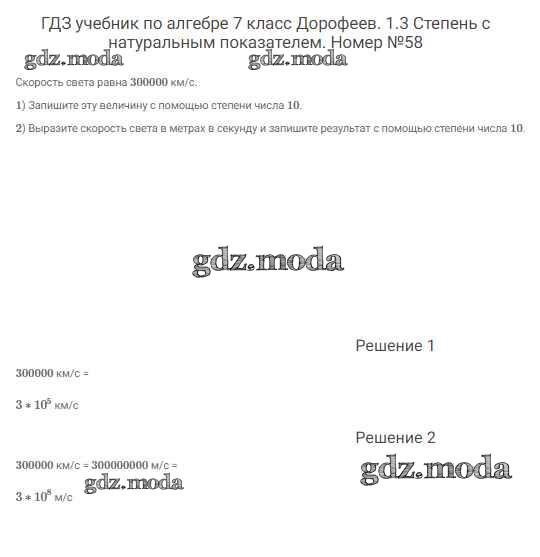 ОТВЕТ на задание № 58 Учебник по Алгебре 7 класс Дорофеев Академический школьный учебник