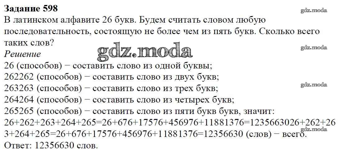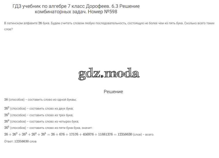 ОТВЕТ на задание № 598 Учебник по Алгебре 7 класс Дорофеев Академический школьный учебник