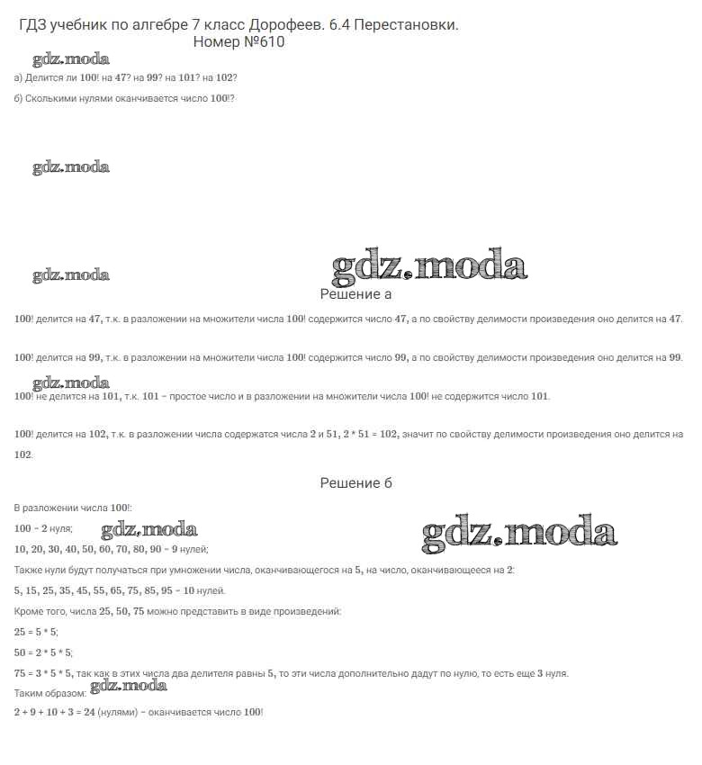 ОТВЕТ на задание № 610 Учебник по Алгебре 7 класс Дорофеев Академический школьный учебник