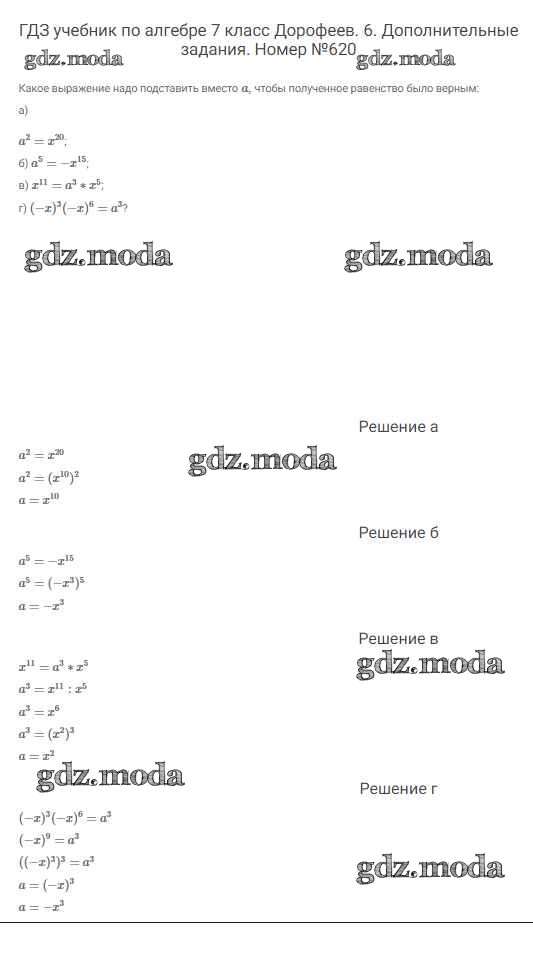 ОТВЕТ на задание № 620 Учебник по Алгебре 7 класс Дорофеев Академический школьный учебник