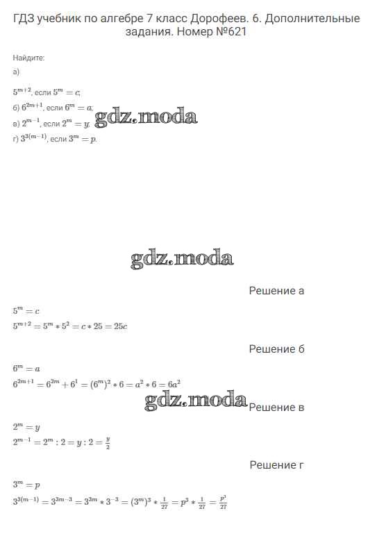 ОТВЕТ на задание № 621 Учебник по Алгебре 7 класс Дорофеев Академический школьный учебник