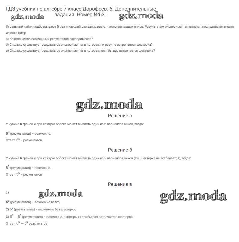 ОТВЕТ на задание № 631 Учебник по Алгебре 7 класс Дорофеев Академический школьный учебник