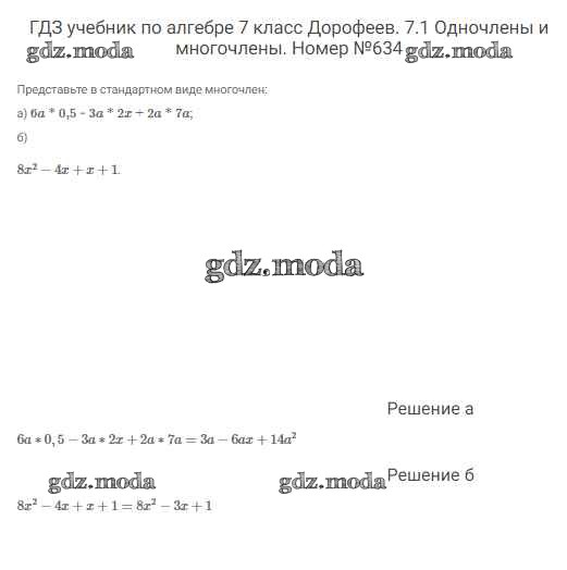 ОТВЕТ на задание № 634 Учебник по Алгебре 7 класс Дорофеев Академический школьный учебник