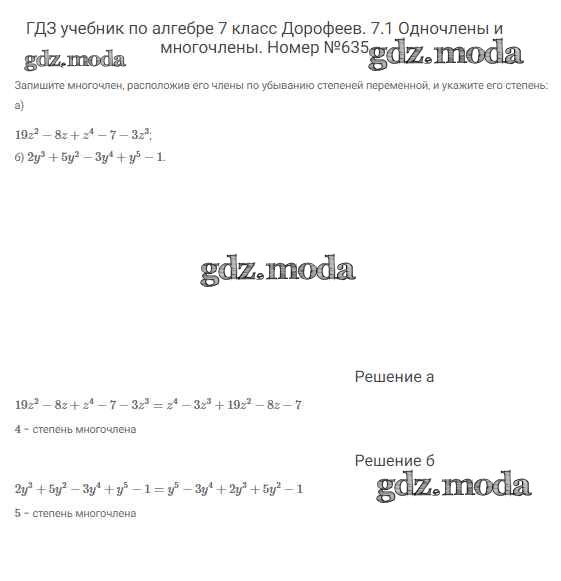 ОТВЕТ на задание № 635 Учебник по Алгебре 7 класс Дорофеев Академический школьный учебник