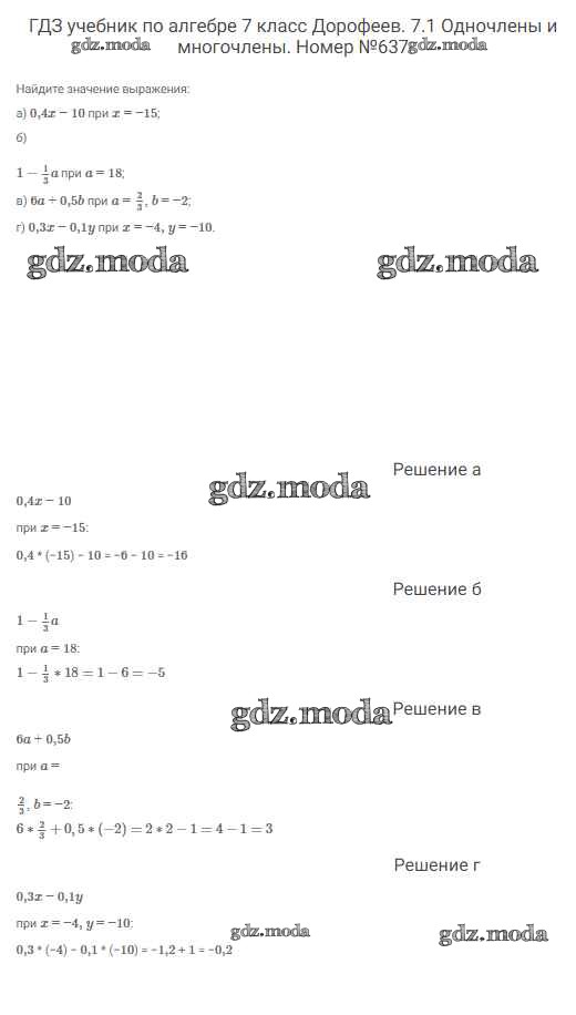 ОТВЕТ на задание № 637 Учебник по Алгебре 7 класс Дорофеев Академический школьный учебник
