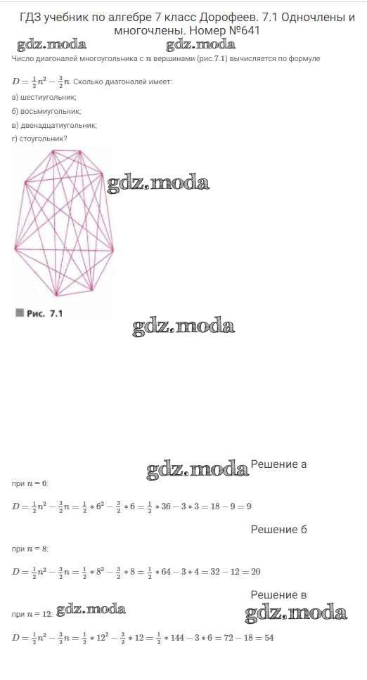 ОТВЕТ на задание № 641 Учебник по Алгебре 7 класс Дорофеев Академический школьный учебник