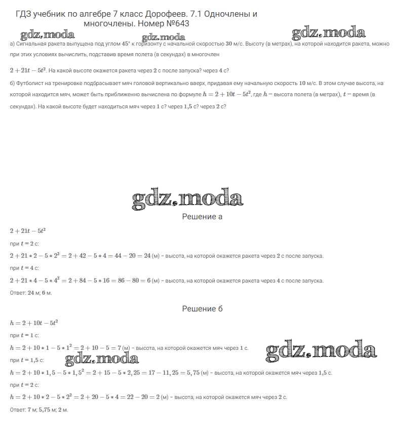 ОТВЕТ на задание № 643 Учебник по Алгебре 7 класс Дорофеев Академический школьный учебник