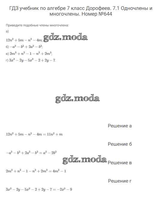 ОТВЕТ на задание № 644 Учебник по Алгебре 7 класс Дорофеев Академический школьный учебник