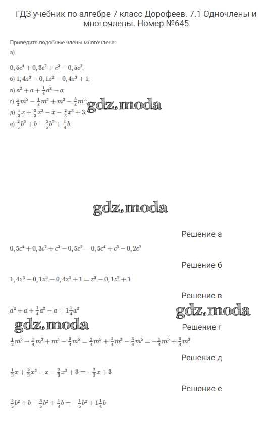 ОТВЕТ на задание № 645 Учебник по Алгебре 7 класс Дорофеев Академический школьный учебник