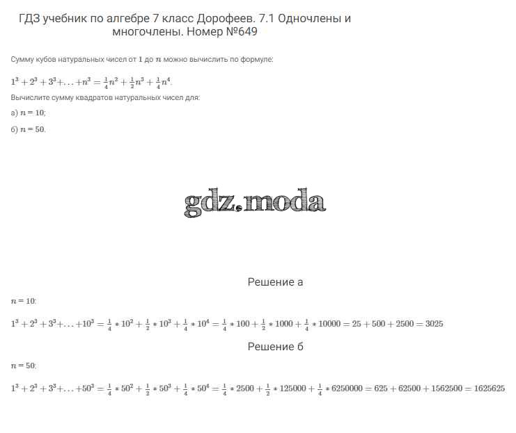 ОТВЕТ на задание № 649 Учебник по Алгебре 7 класс Дорофеев Академический школьный учебник