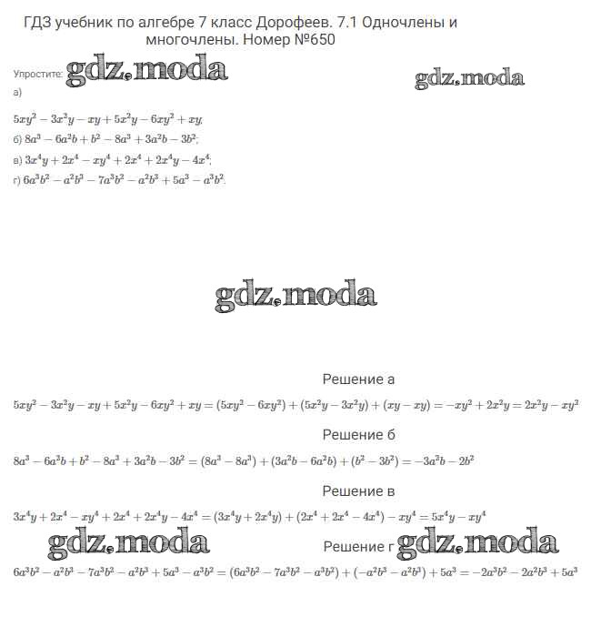 ОТВЕТ на задание № 650 Учебник по Алгебре 7 класс Дорофеев Академический школьный учебник