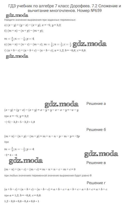 ОТВЕТ на задание № 659 Учебник по Алгебре 7 класс Дорофеев Академический школьный учебник