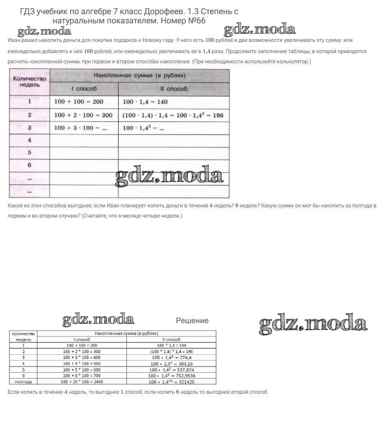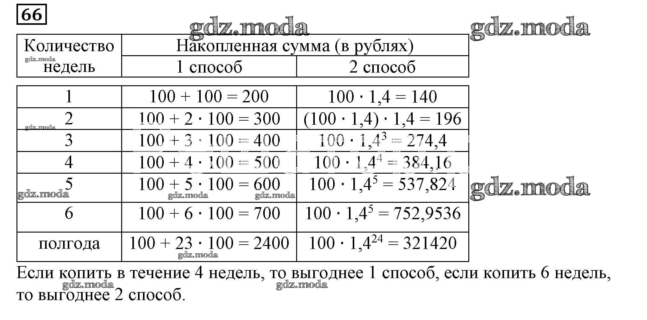 ОТВЕТ на задание № 66 Учебник по Алгебре 7 класс Дорофеев Академический школьный учебник