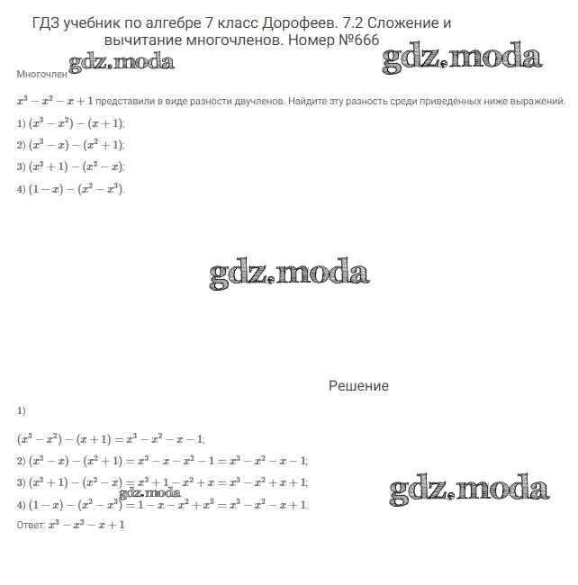 ОТВЕТ на задание № 666 Учебник по Алгебре 7 класс Дорофеев Академический школьный учебник