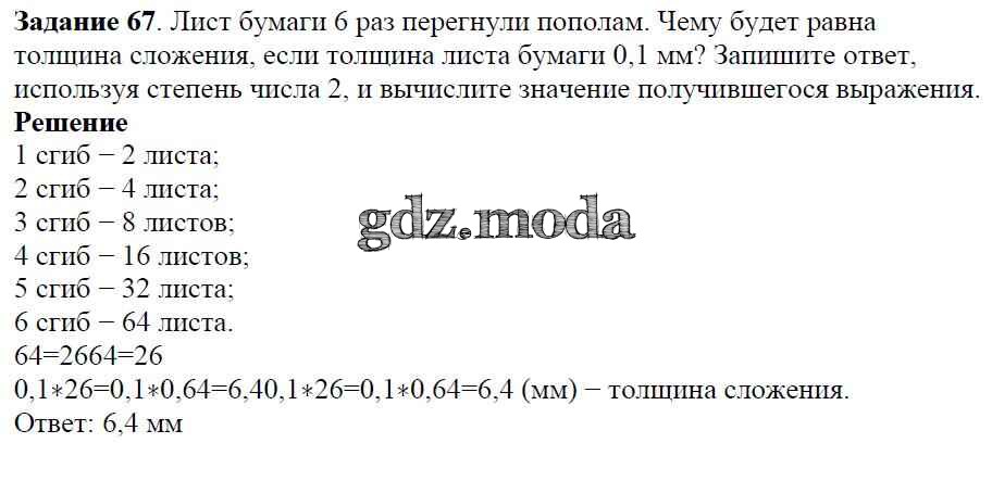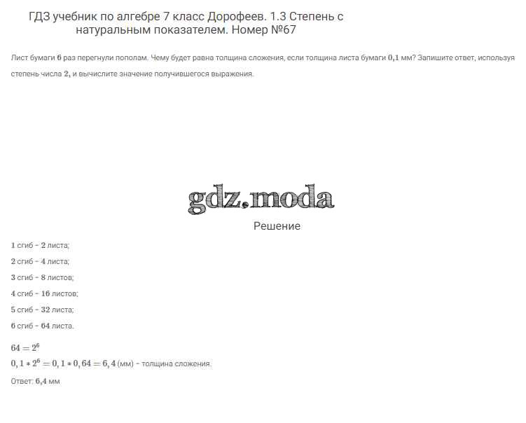 ОТВЕТ на задание № 67 Учебник по Алгебре 7 класс Дорофеев Академический школьный учебник