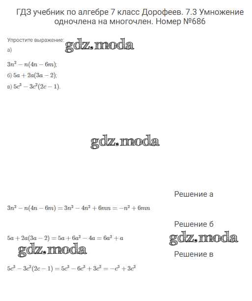 ОТВЕТ на задание № 686 Учебник по Алгебре 7 класс Дорофеев Академический школьный учебник