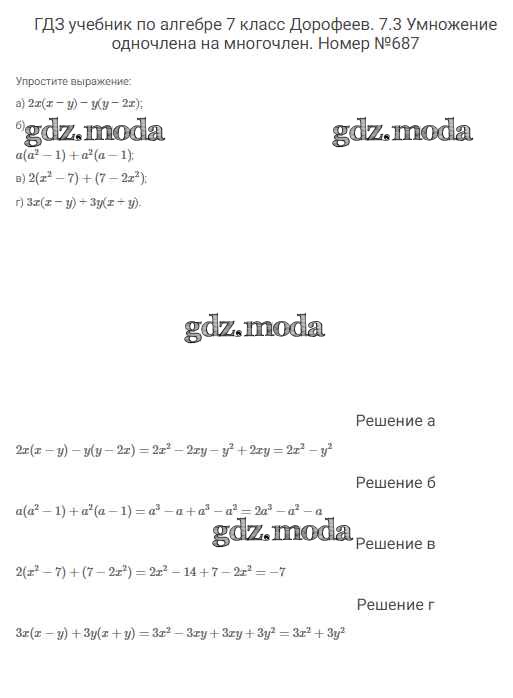 ОТВЕТ на задание № 687 Учебник по Алгебре 7 класс Дорофеев Академический школьный учебник